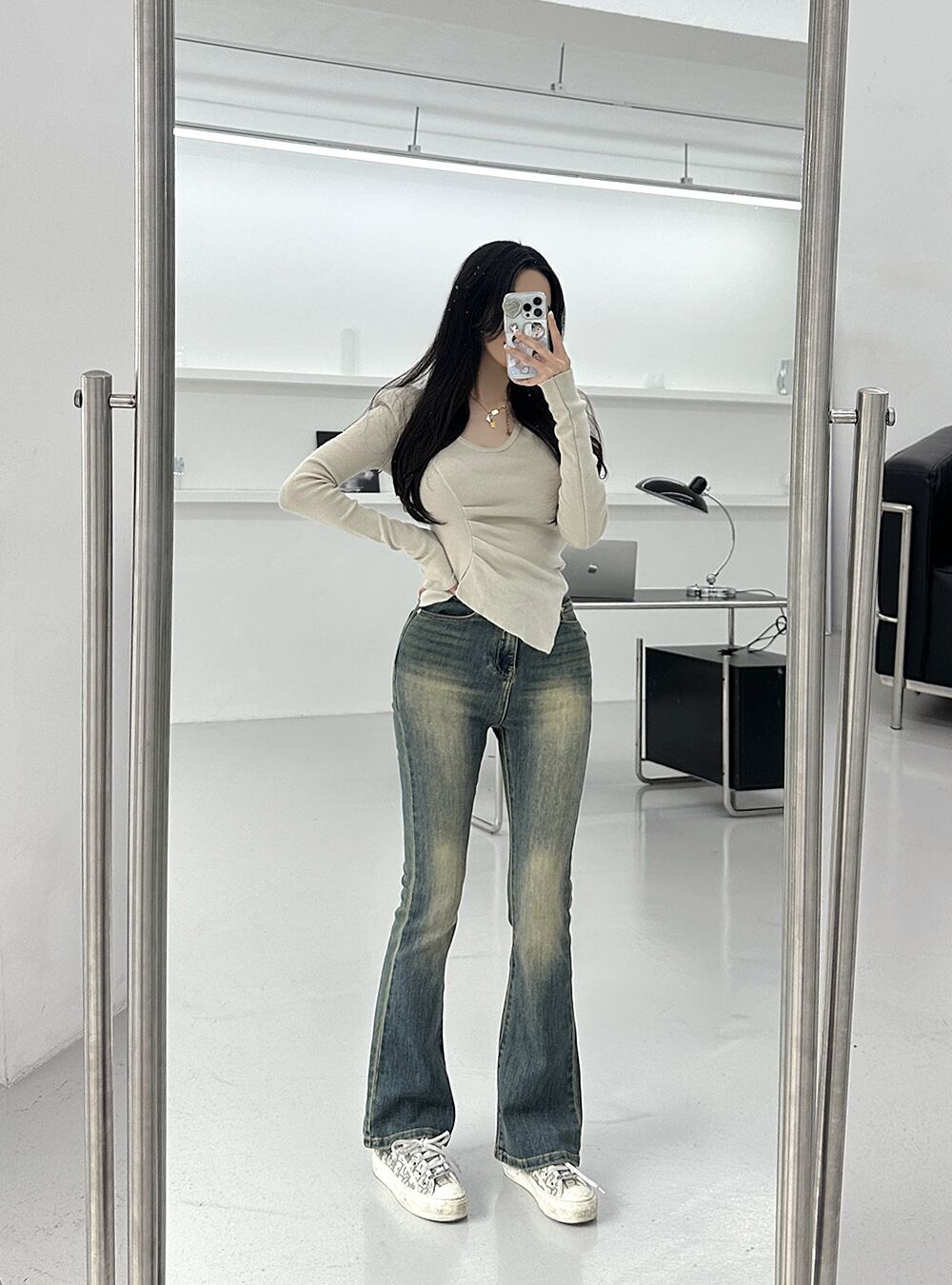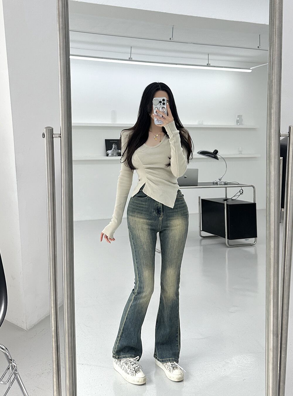 どんなスタイルにもぴったりよく染み込むブーツカットのデニムです♥